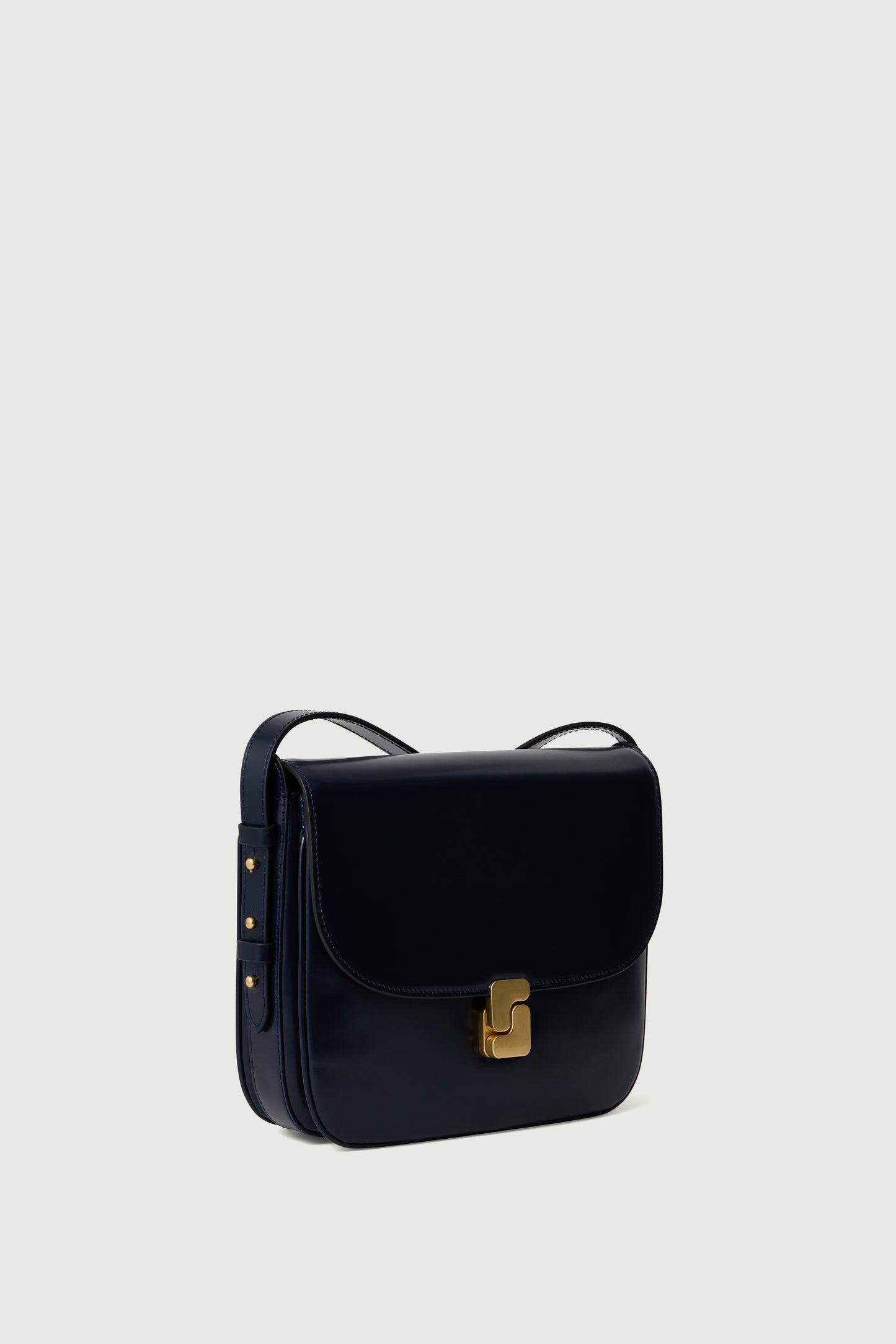bellissima maxi bag Large blue glazed leather bag with "S" monogram